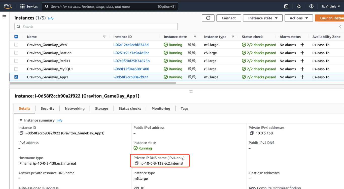 查看并记录您Tomcat服务的地址,回到控制台,查看命名为Graviton_GameDay_App1的实例