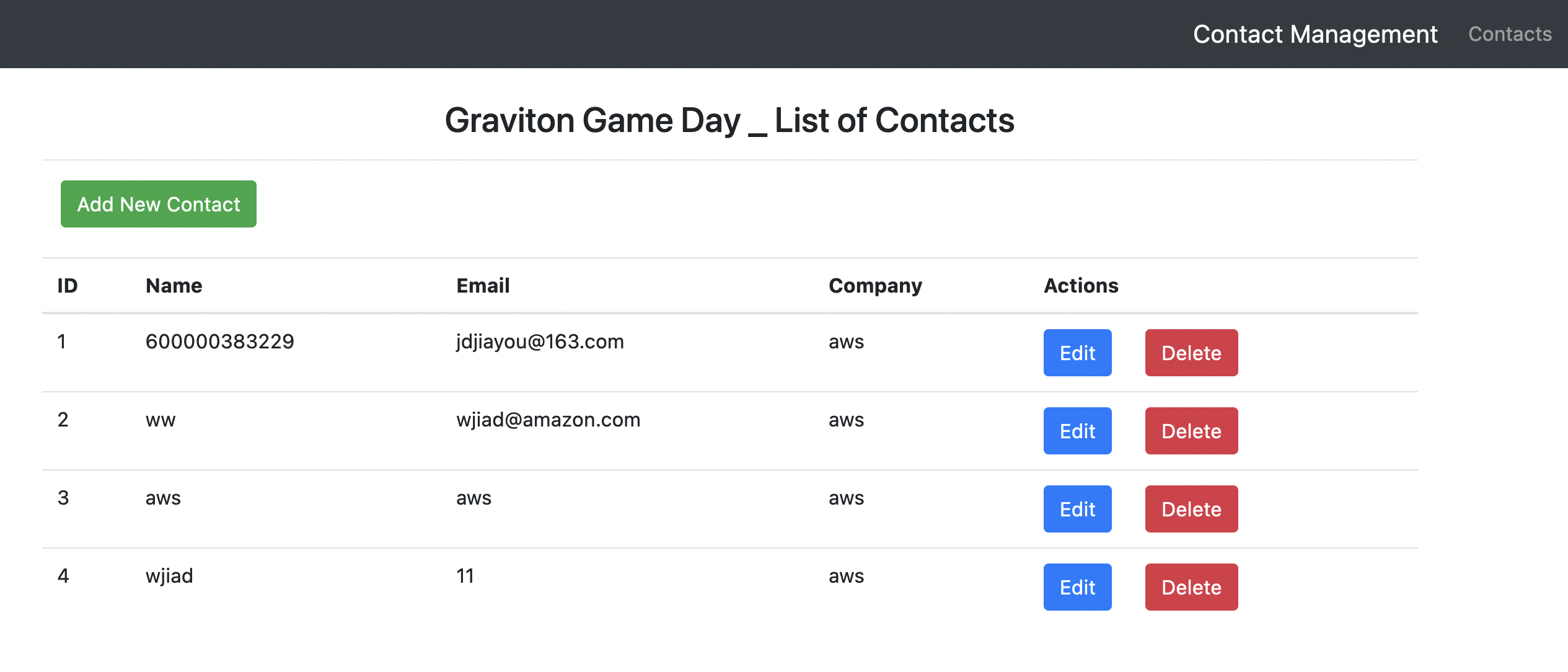 6,您可以在浏览器中打开新的窗口页面,重新进入联系人系统,如您cloudformation输出的cloudfront地址,例如https://dirjlcj2zs8i9.cloudfront.net/sample-webapp/