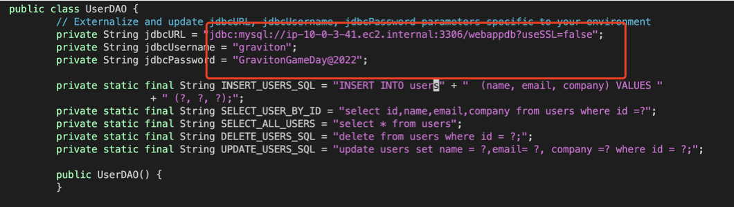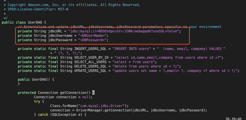 vim /home/ec2-user/code/sample-webapp/src/main/java/com/sample/app/usermanagement/dao/UserDAO.java