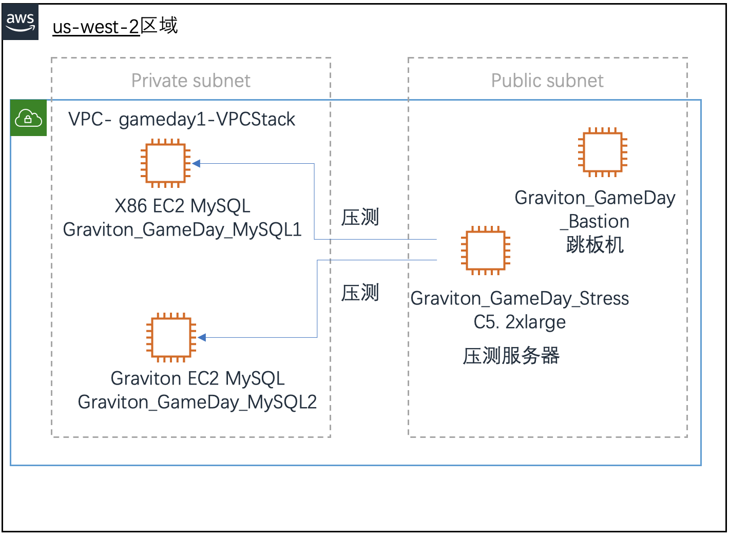1台压测服务器(沿用压力测试机 Graviton_GameDay_Stress)